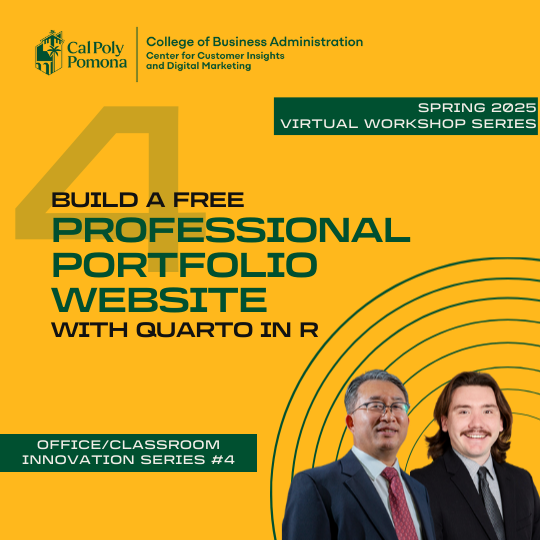 Part of the Spring 2025 CCIDM Virtual Workshop Series, this hands-on session focuses on planning and launching a professional portfolio website with Quarto—no prior coding required. You’ll learn how to organize résumé/CV content, projects, and publications into a cohesive site, apply custom styling with SCSS and themes, and publish your work using GitHub Pages for a credible, public-facing presence.