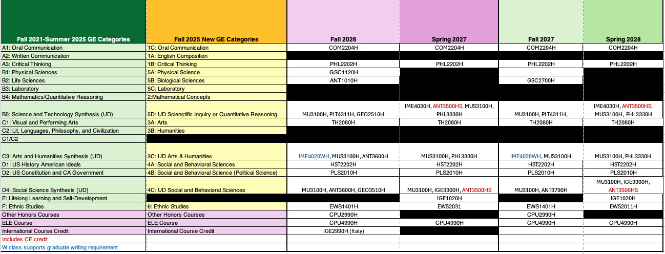Future Honors Course Offerings