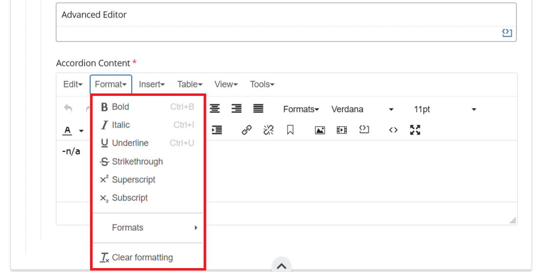 - Formats (Advanced) - Provides additional structural options such as headings, paragraphs, blockquotes, and inline code for more precise content organization.