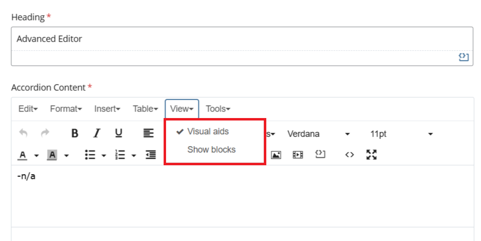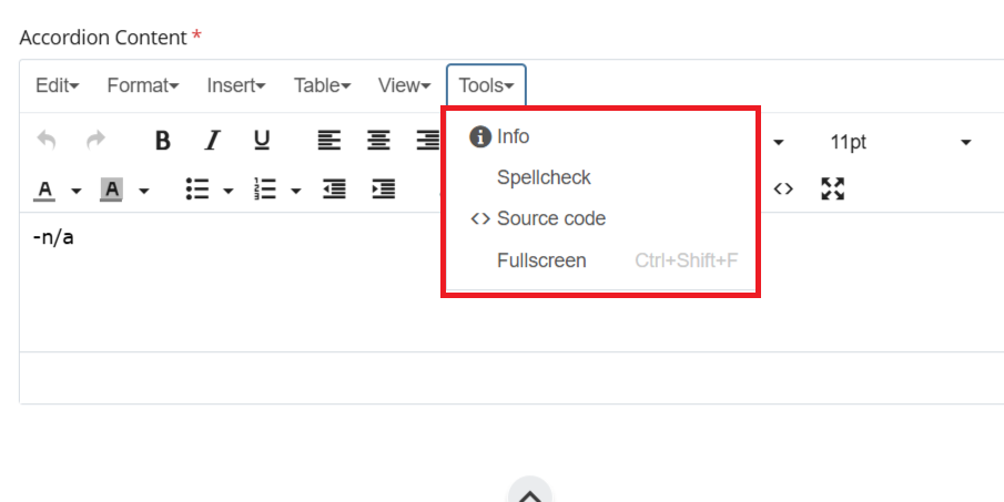- Source Code - Opens the full HTML view, allowing direct editing of the underlying content markup.