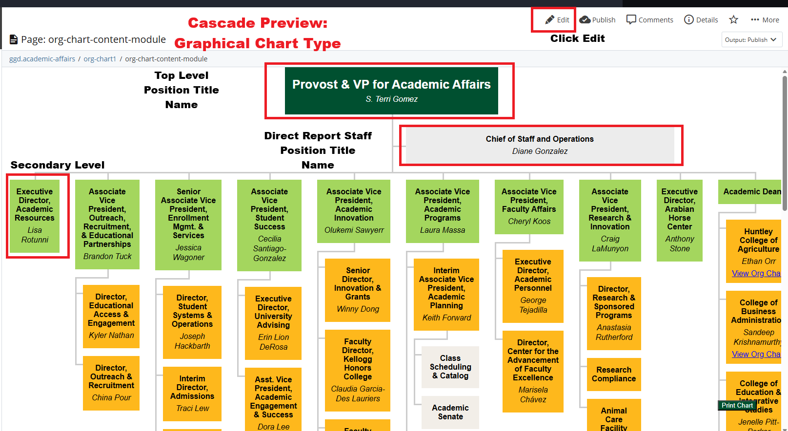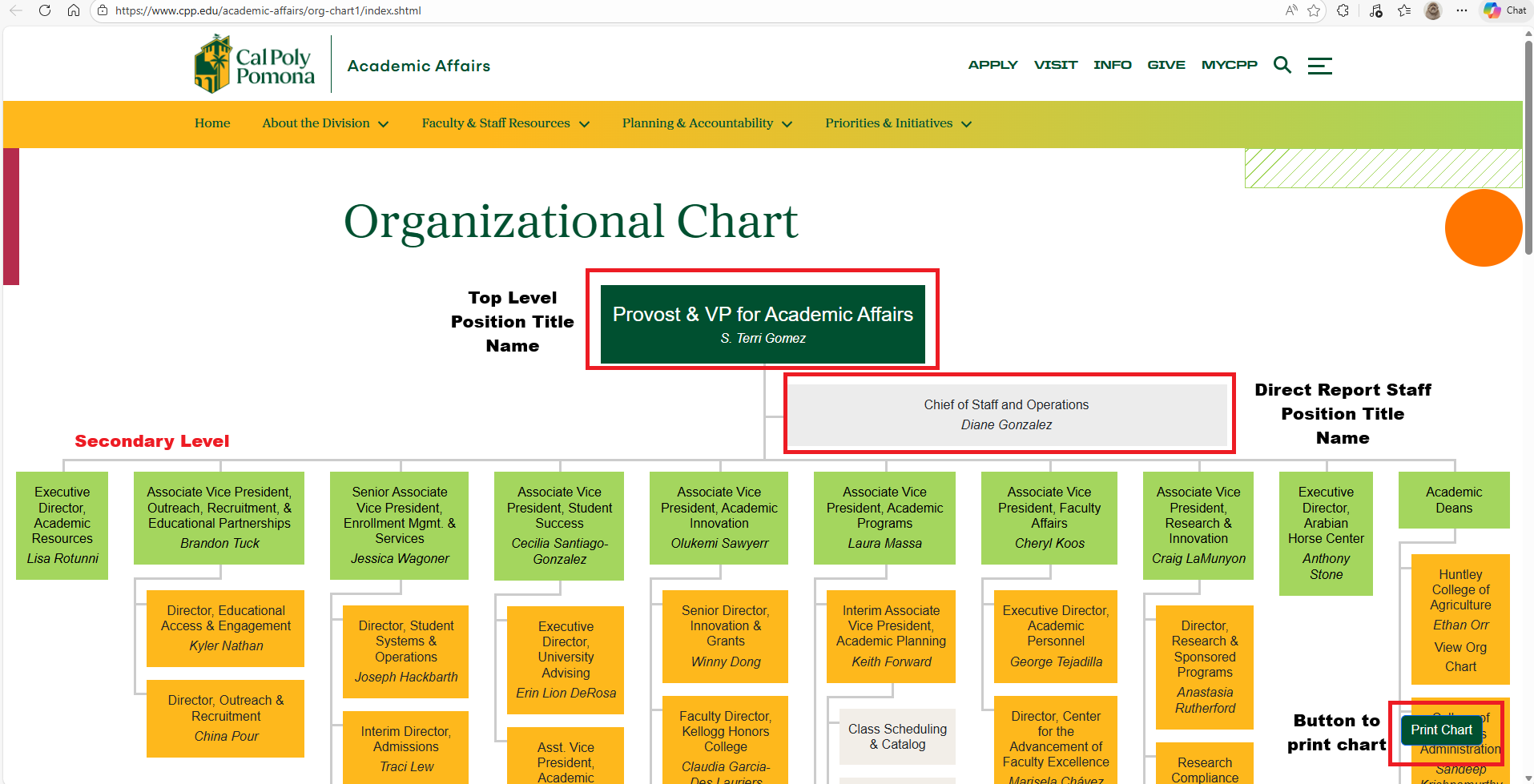 - Role Title and Role Holder Name for Top Level Position Title and Name